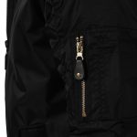 - The water-resistant 82gm 100% polyester fabric of our lightweight bomber jacket has a zip front clasp.